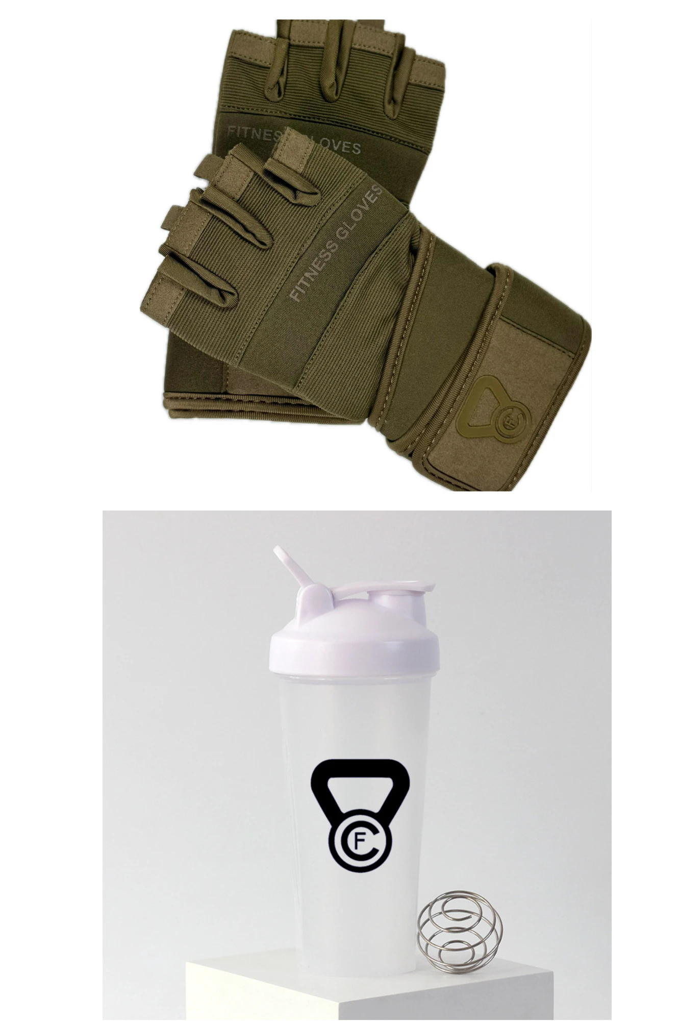 Zestaw akcesoriów treningowych Cast Fitness – rękawiczki, shaker